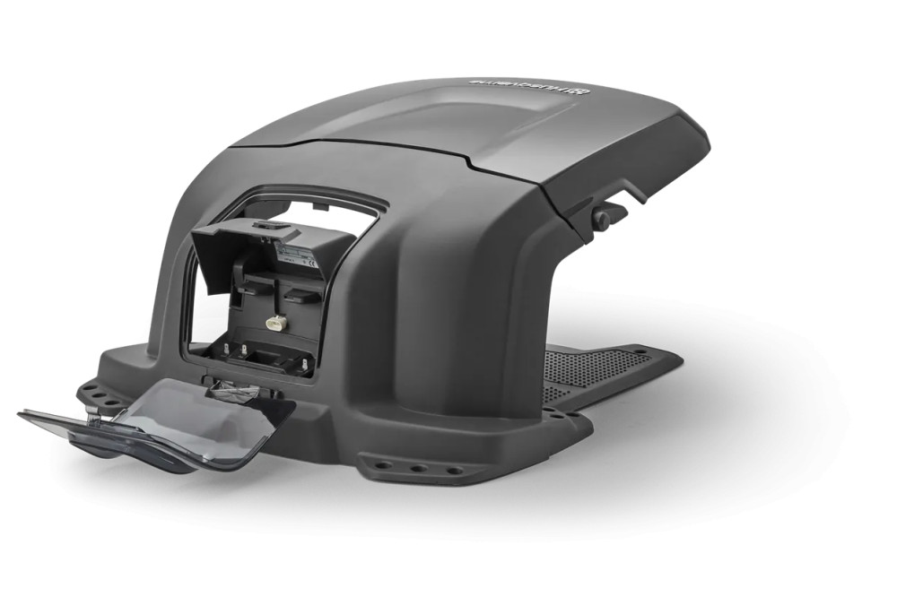 Sok utángyártott tárolóval ellentétben az eredeti Husqvarna garázs tervezésekor a felhasználói élmény volt az elsődleges szempont. A védőtető felső része zsanérokkal ellátott, így széles szögben felnyitható. Ez lehetővé teszi, hogy Ön anélkül érje el a robot kijelzőjét és billentyűzetét, hogy ki kellene húznia a gépet a töltőállomásról vagy kényelmetlenül be kellene hajolnia a tető alá. A beállítások módosítása, az ütemterv frissítése vagy a hibaüzenetek ellenőrzése így pillanatok alatt, kényelmesen elvégezhető.